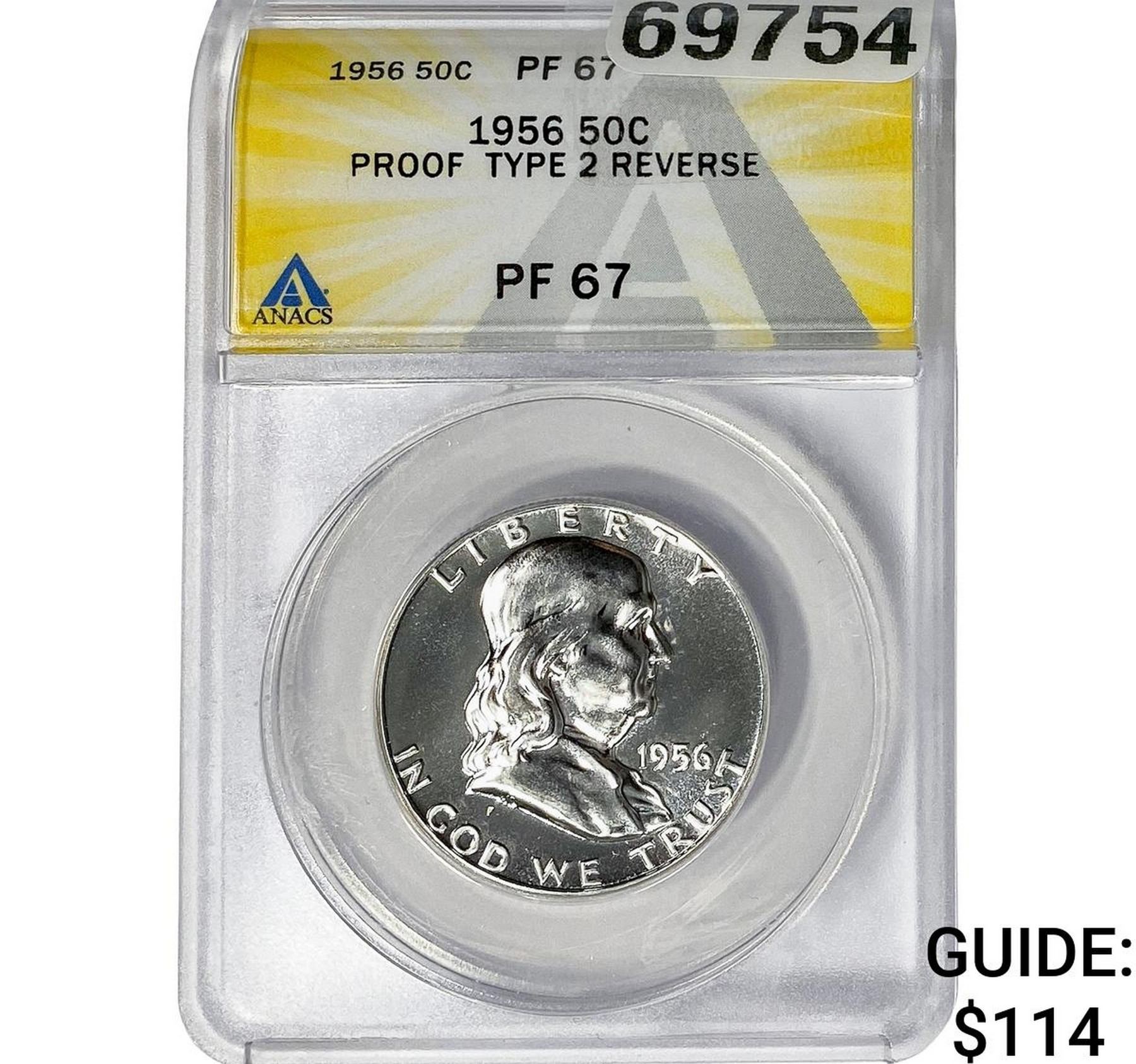 1956 Franklin Half Dollar ANACS PF67 Proof Ty2 Rev.