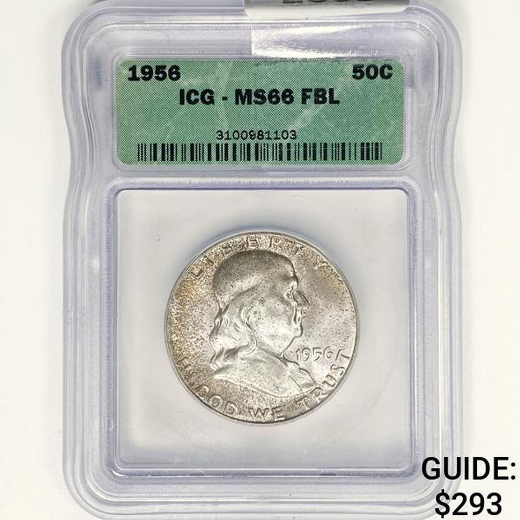1956 Franklin Half Dollar ICG MS66 FBL