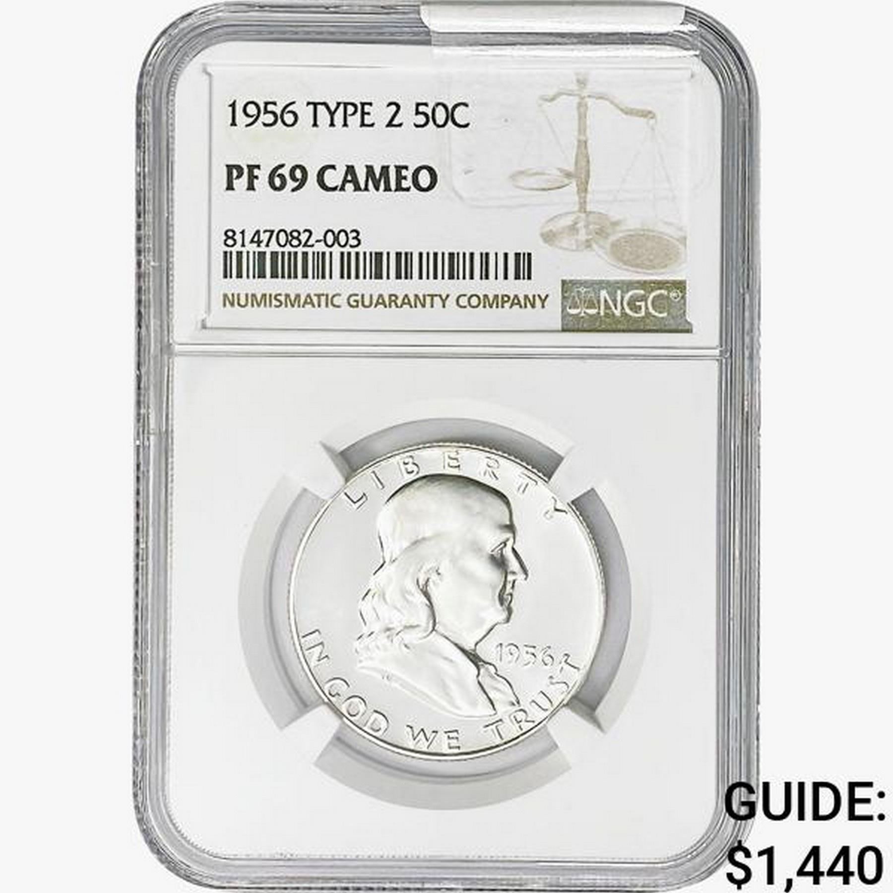 1956 Franklin Half Dollar NGC PF69 Ty 2 Cameo