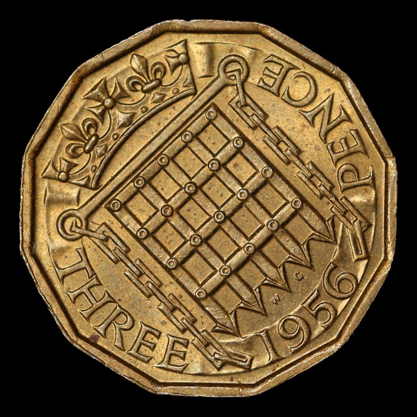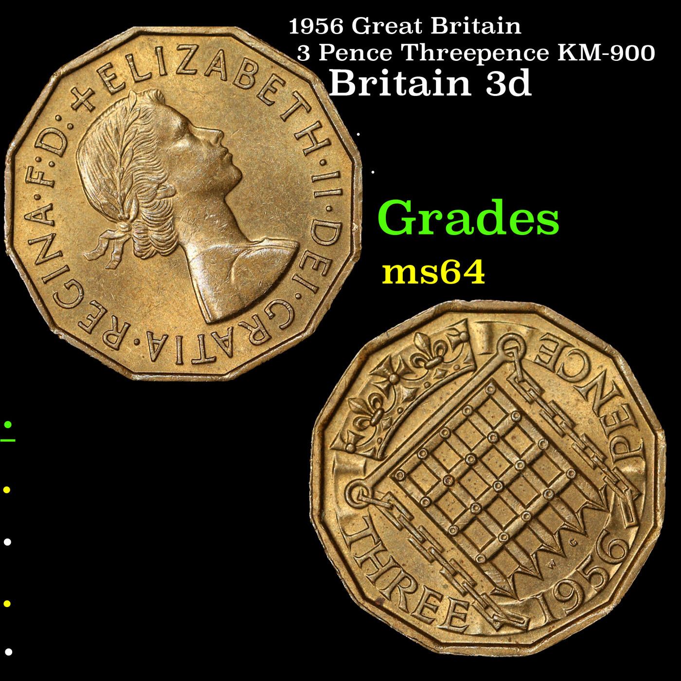 1956 Great Britain 3 Pence Threepence KM-900 Grades Choice Unc.