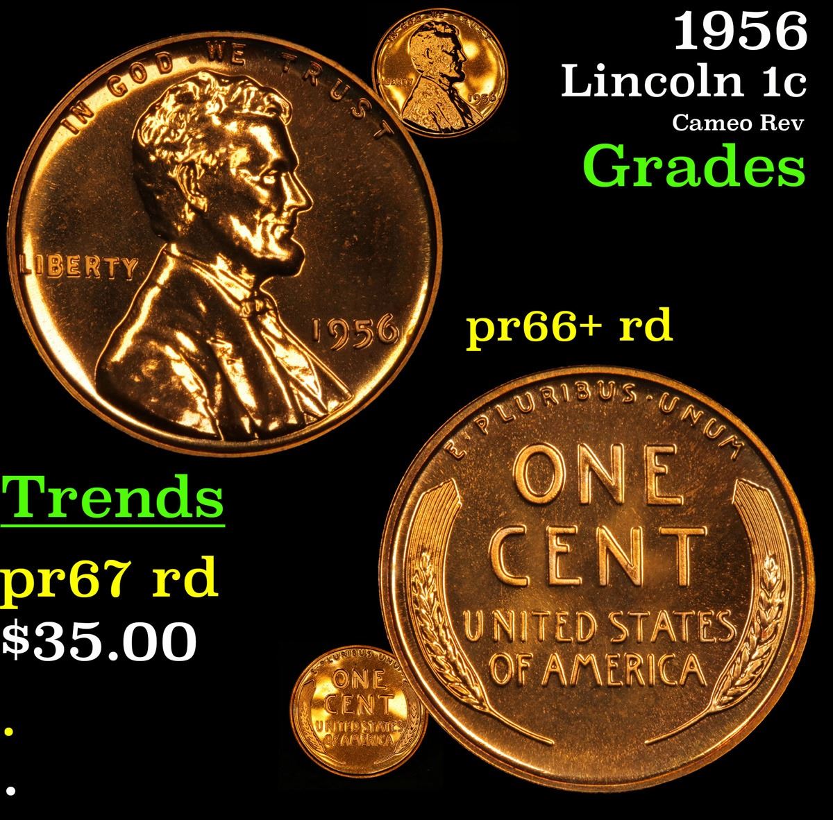 1956 Lincoln Cent 1c Grades Gem+= Proof Red.