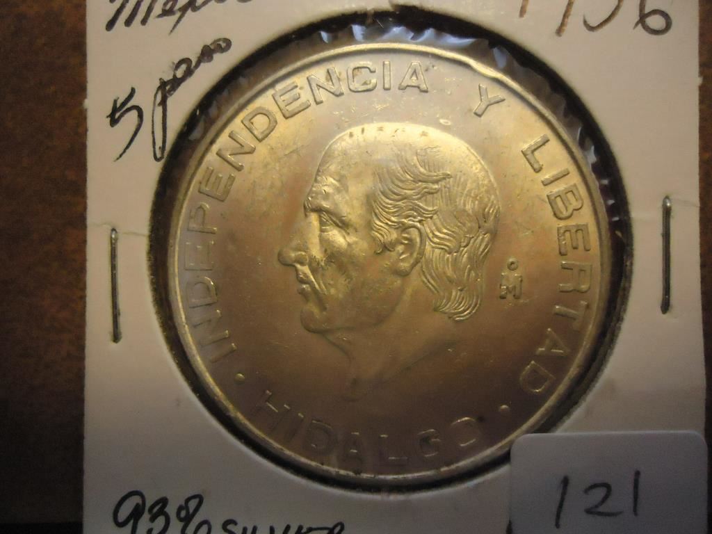 1956 MEXICO SILVER 5 PESOS .4178 OZ. ASW
