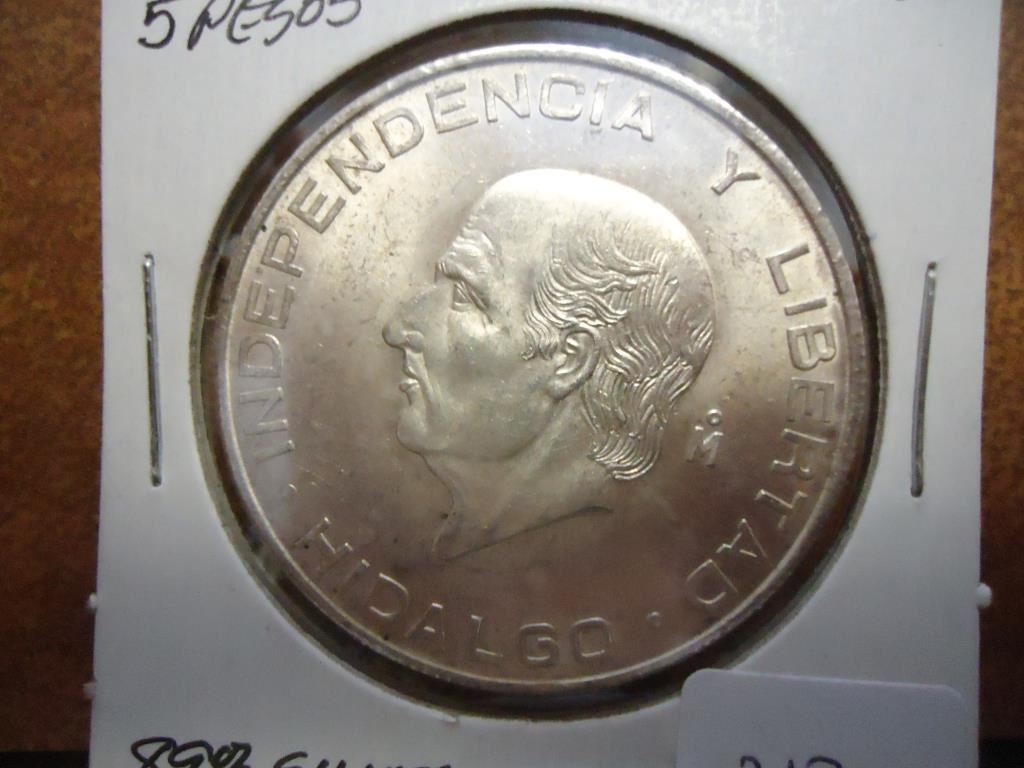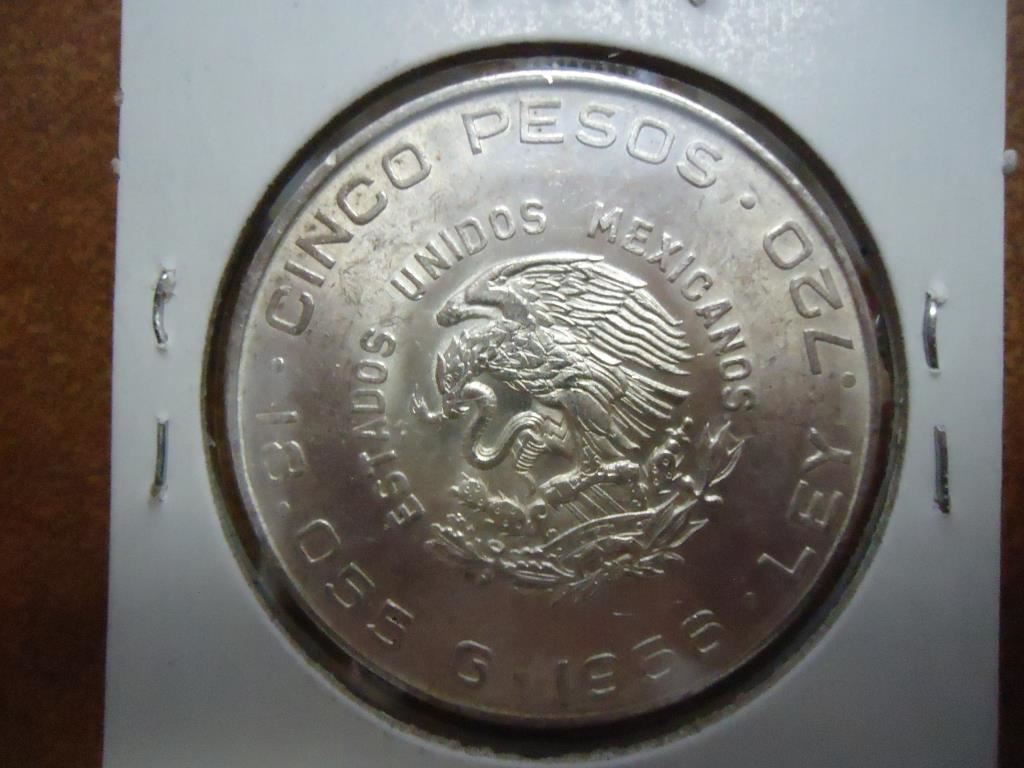 1956 MEXICO SILVER 5 PESOS .4178 OZ. ASW