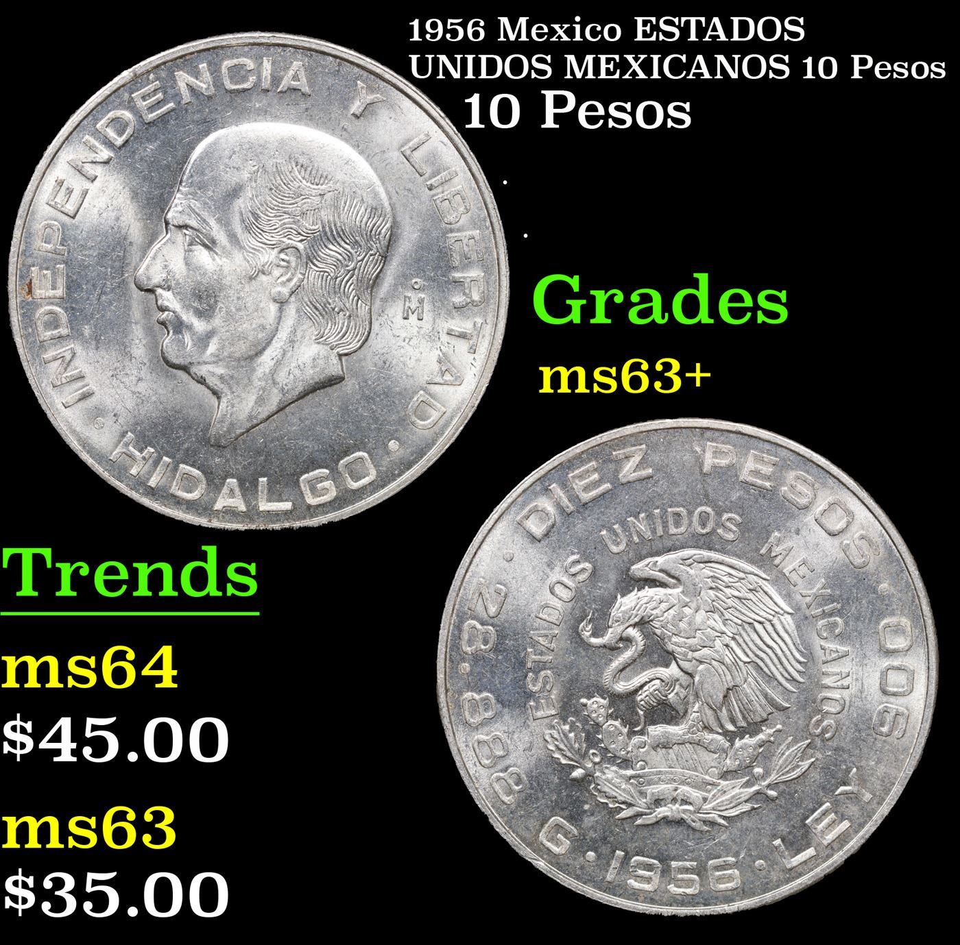1956 Mexico ESTADOS UNIDOS MEXICANOS 10 Pesos Grades Select+ Unc.