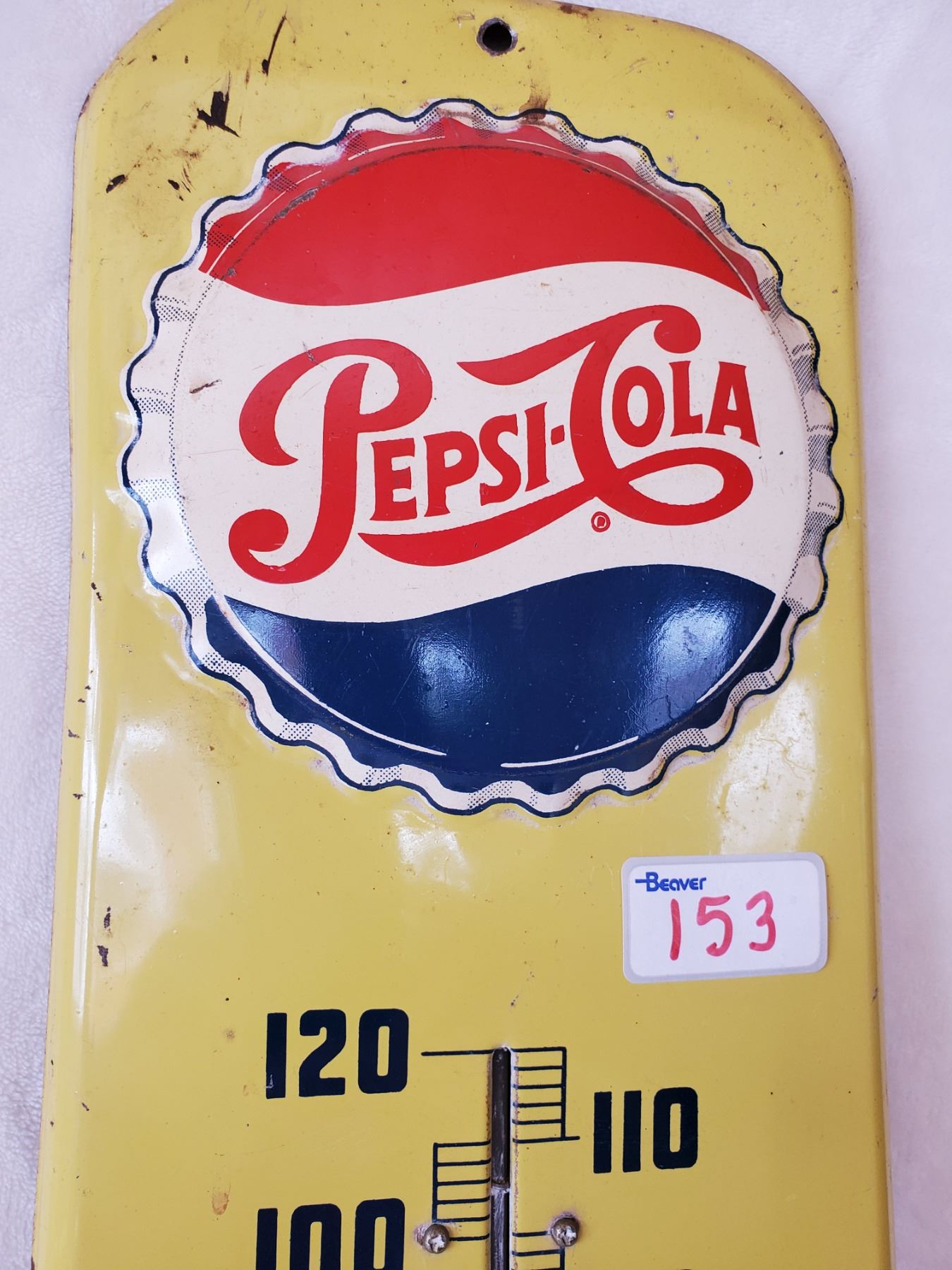 1956 PEPSI-COLA THERM. 27" WITH EMBOSSED PEPSI-COLA CAP