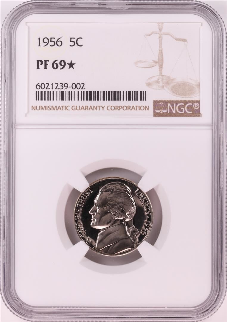 One 1956 Proof Jefferson Nickel Coin NGC PF69* STAR. NGC Certified.