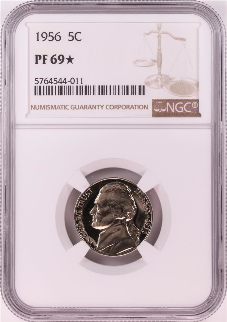 One 1956 Proof Jefferson Nickel Coin NGC PF69* STAR. NGC Certified.
