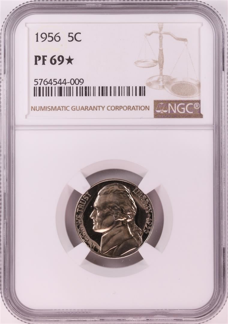 One 1956 Proof Jefferson Nickel Coin NGC PF69* STAR. NGC Certified.