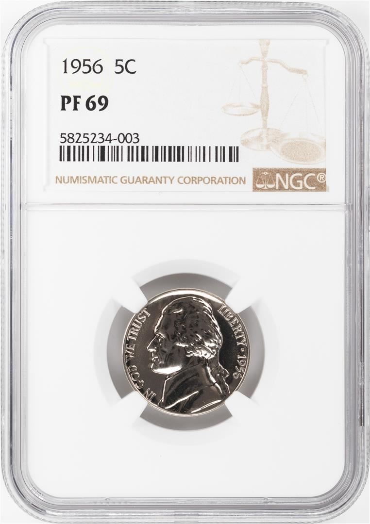 One 1956 Proof Jefferson Nickel Coin NGC PF69. NGC Certified.