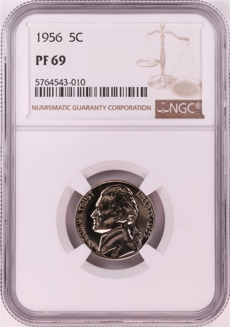 One 1956 Proof Jefferson Nickel Coin NGC PF69. NGC Certified.