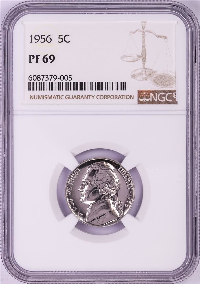 One 1956 Proof Jefferson Nickel Coin NGC PF69. NGC Certified.