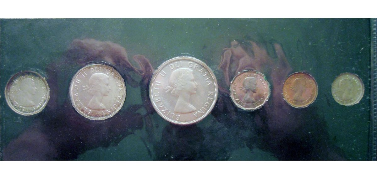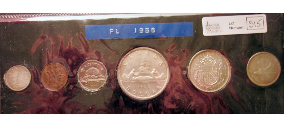 1956 Proof Like in white cardboard, cent Red & Brown, 5 cents as corrosion.