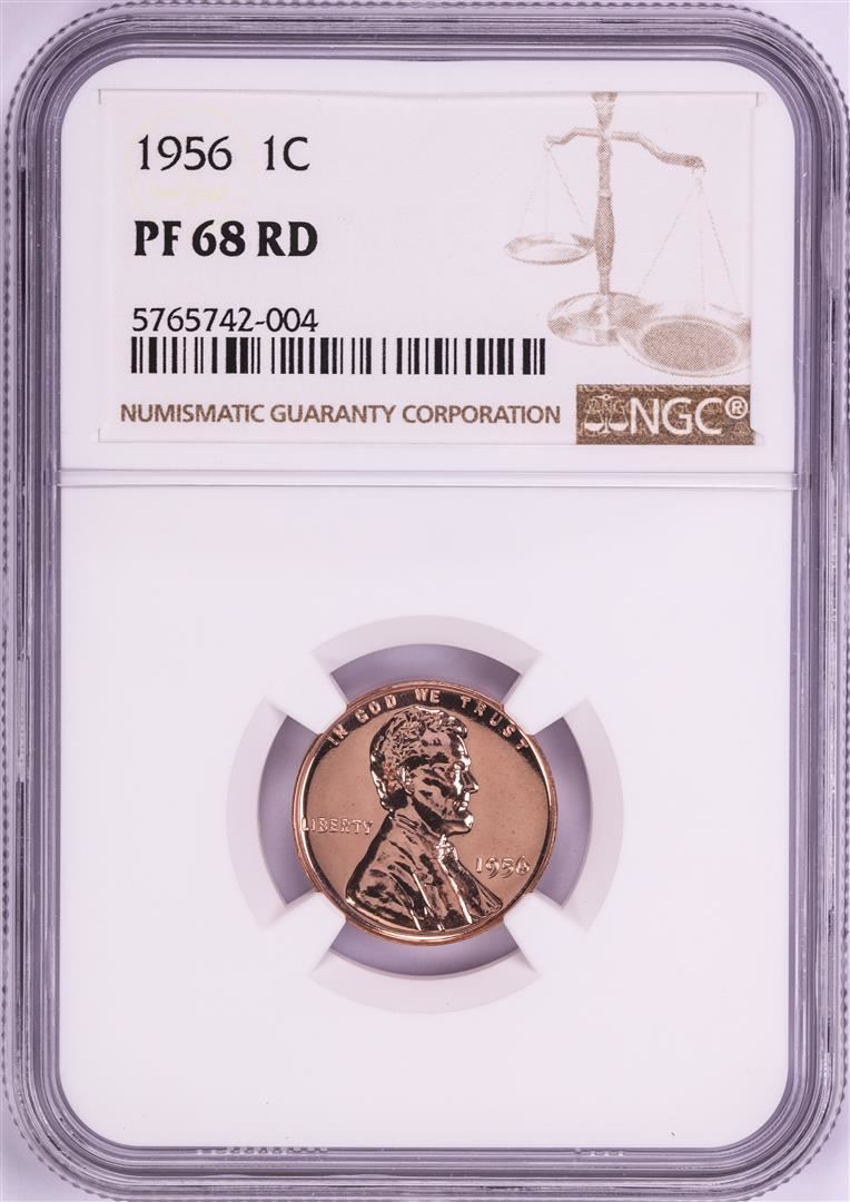 One 1956 Proof Lincoln Wheat Cent Coin NGC PF68RD. NGC Certified.