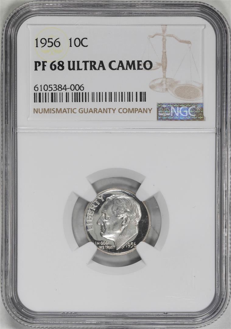 One 1956 Proof Roosevelt Dime Coin NGC PF68 Ultra Cameo. NGC Certified.