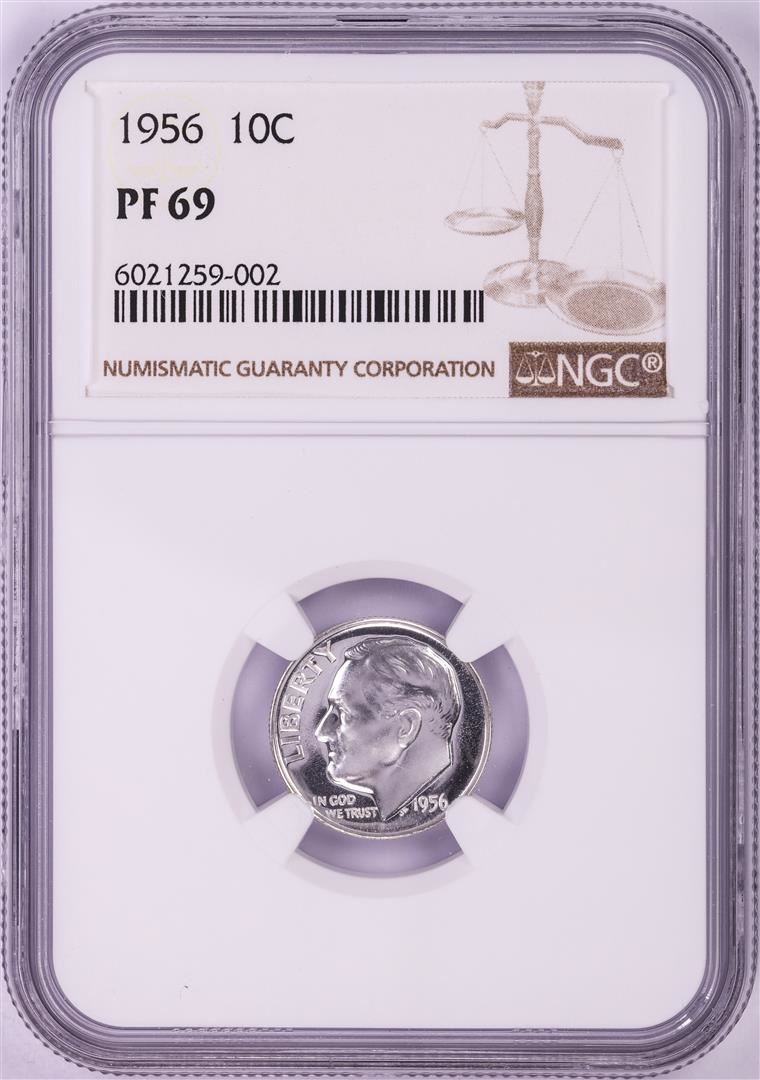 One 1956 Proof Roosevelt Dime Coin NGC PF69. NGC Certified.