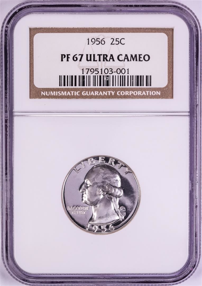 One 1956 Proof Washington Quarter Coin NGC PF67 Ultra Cameo. NGC Certified.