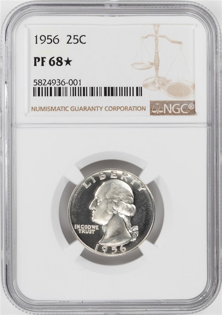 One 1956 Proof Washington Quarter Coin NGC PF68 Star. NGC Certified.