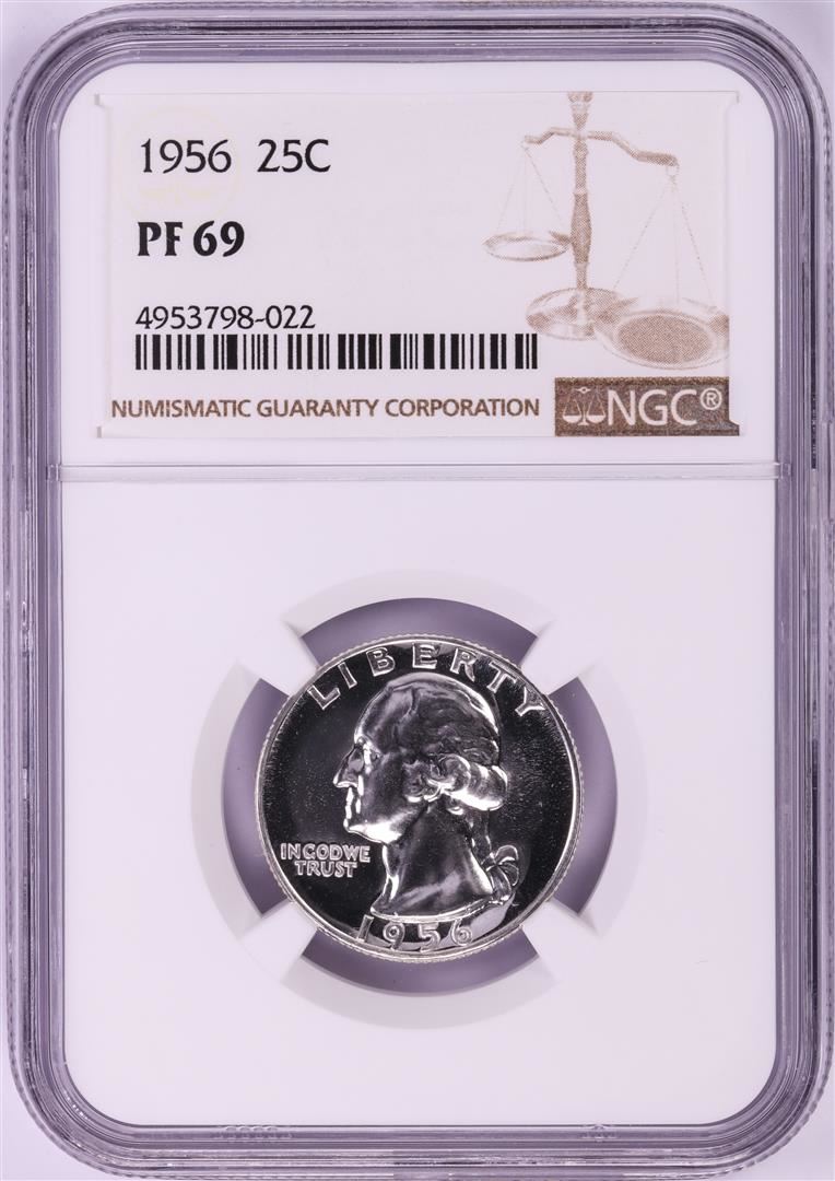 One 1956 Proof Washington Quarter Coin NGC PF69. NGC Certified.