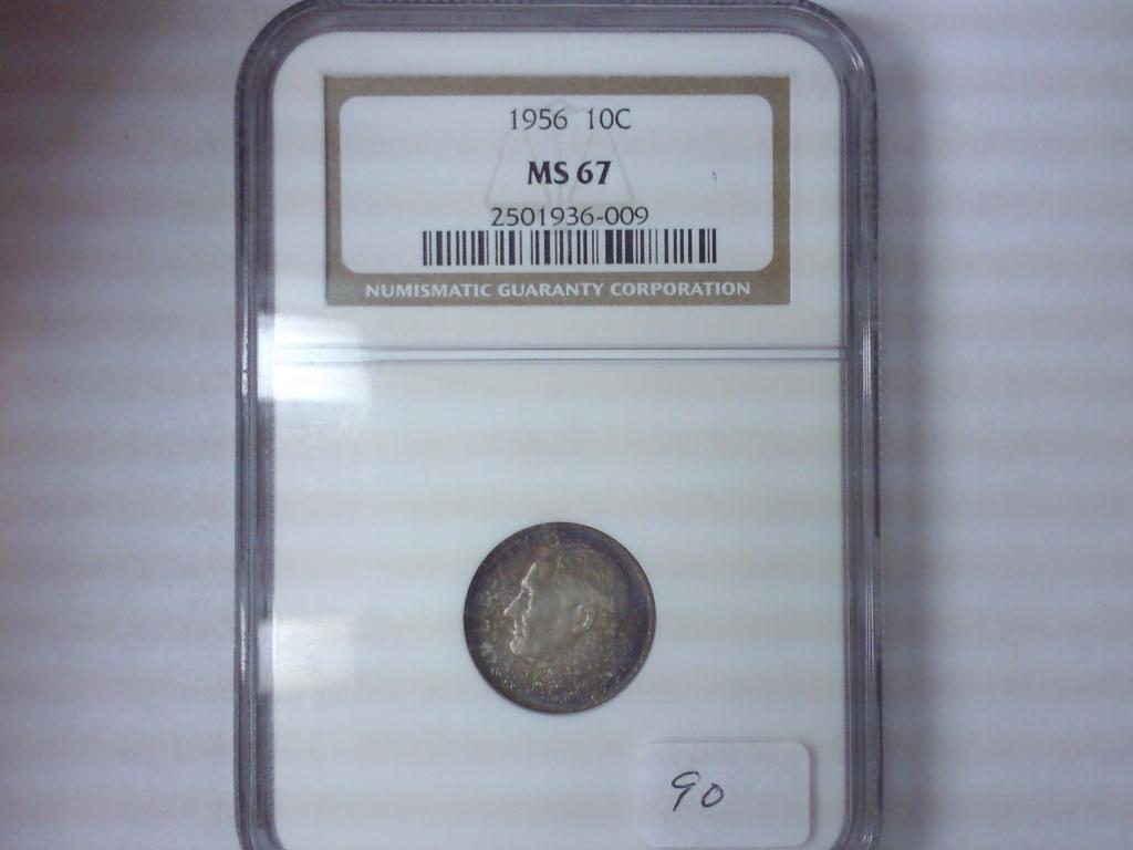 1956 ROOSEVELT DIME NGC MS67 TONED