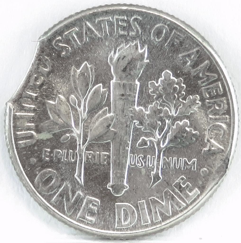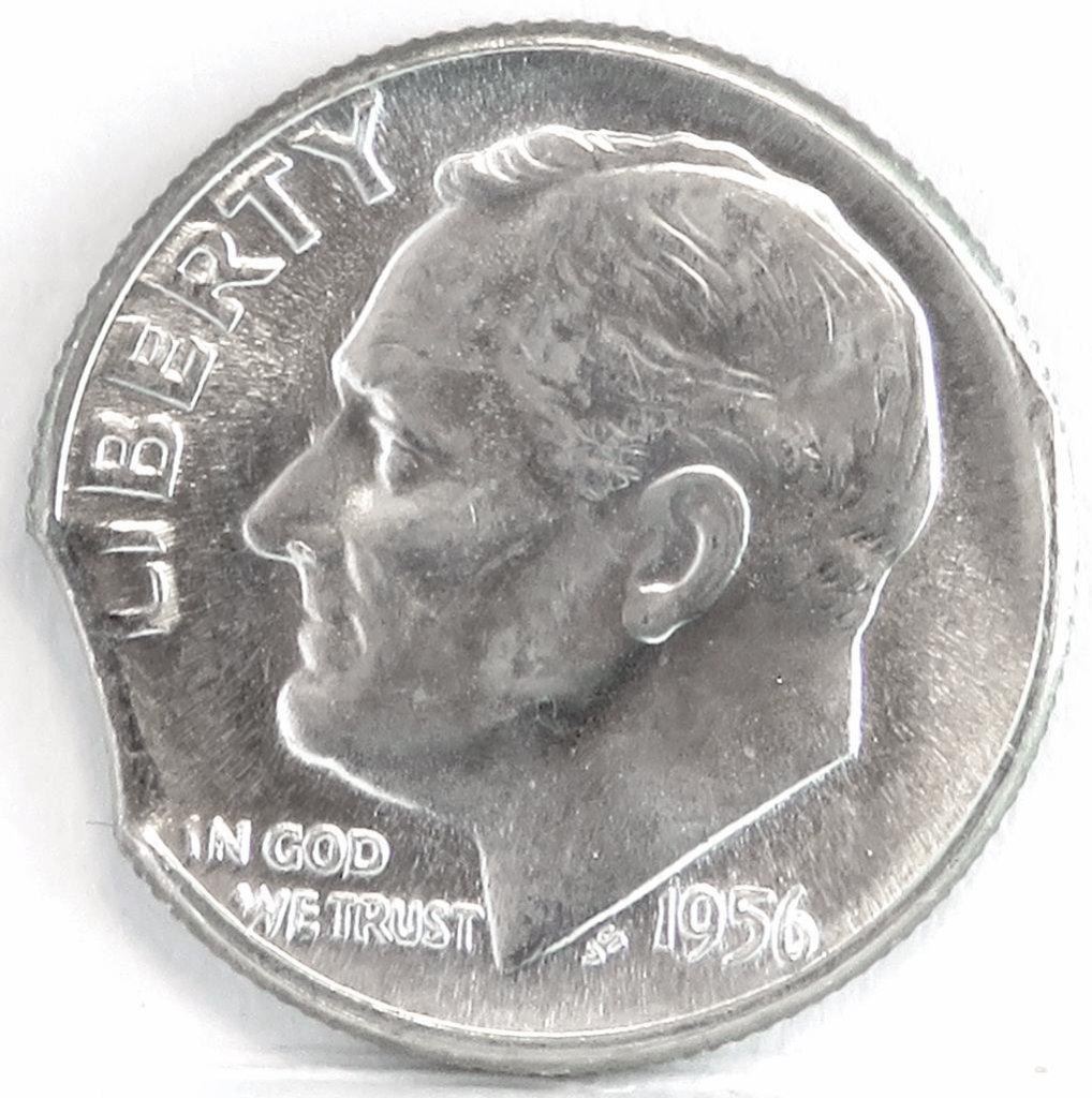 1956 Roosevelt Dime - Clip Planchet Mint Error.