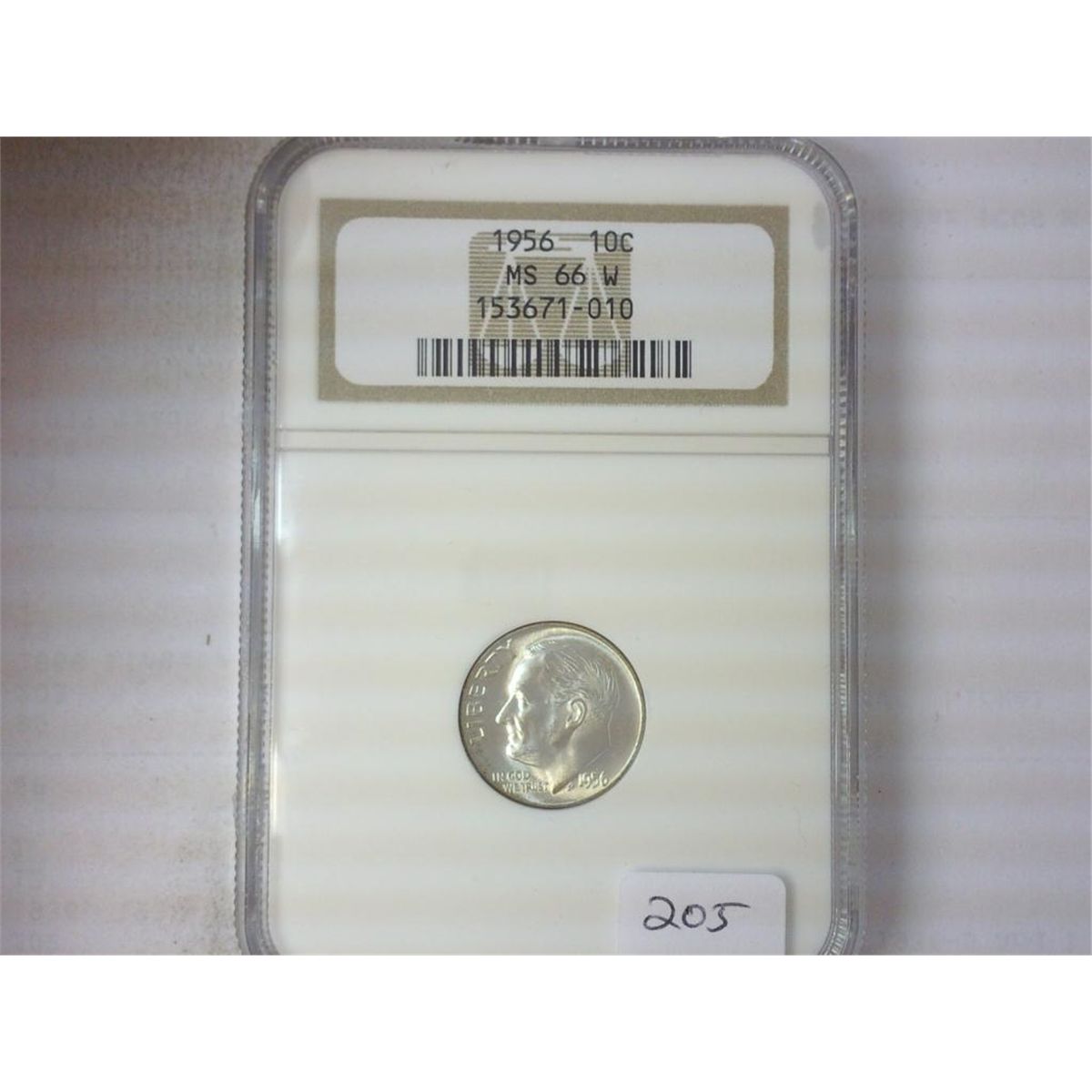 1956 SILVER ROOSEVELT DIME NGC MS66 W