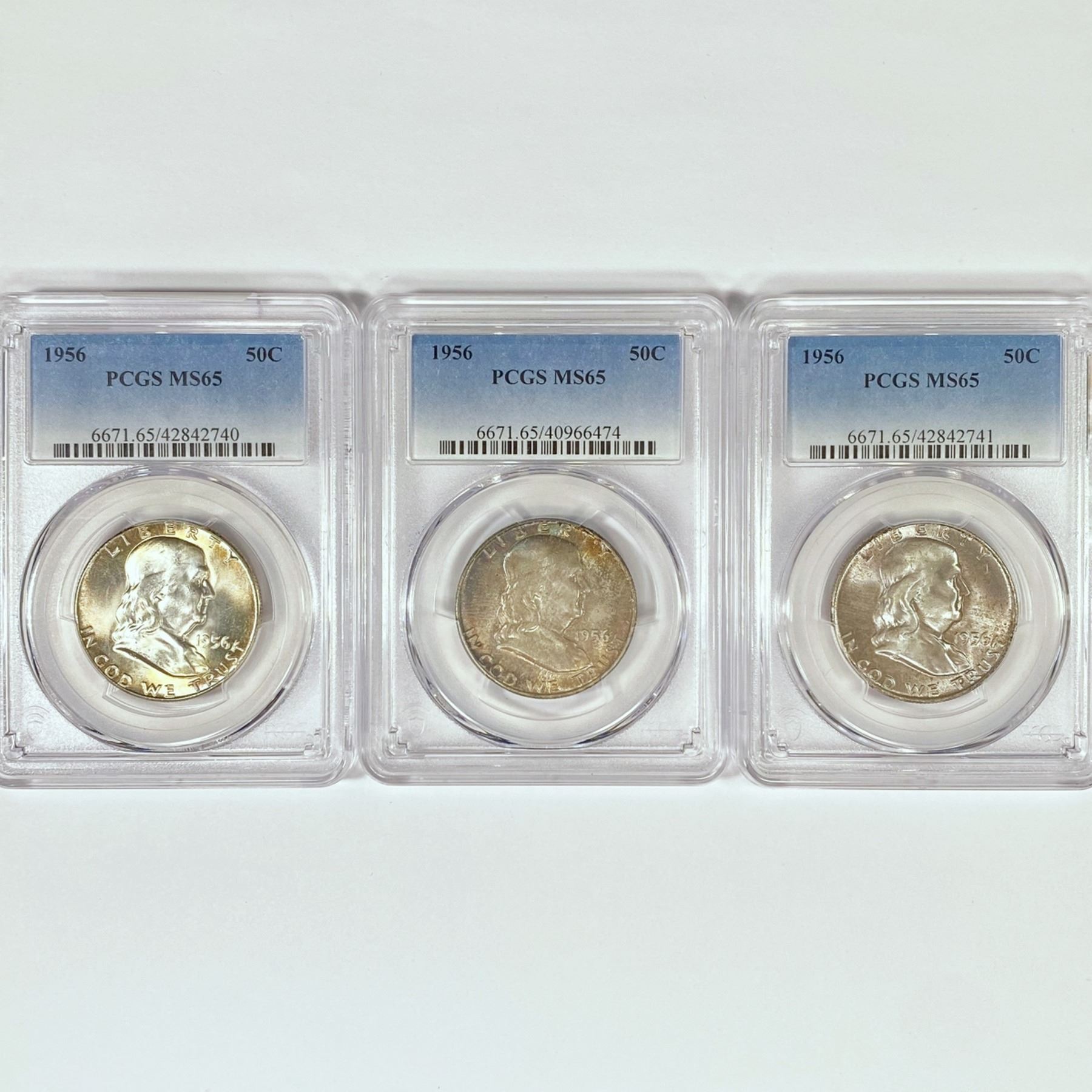 1956 Set (3) Franklin Half Dollar PCGS MS65
