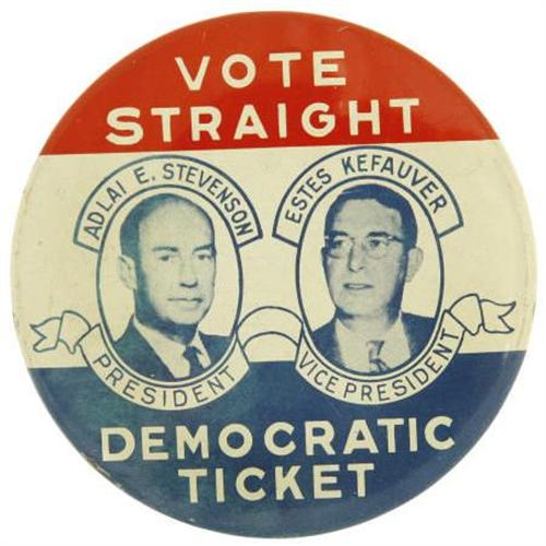 <B>1956 Adlai Stevenson and Estes Kefauver Presidential Campaign Jugate Button,</B></I> 3”. Clean and fine. <BR><BR><b>Shipping:</b> Miscellaneous Collectibles, Smal (<a target="_blank" href="http://www.heritageauctions.com/common/shipping.php">view shipping information</a>)