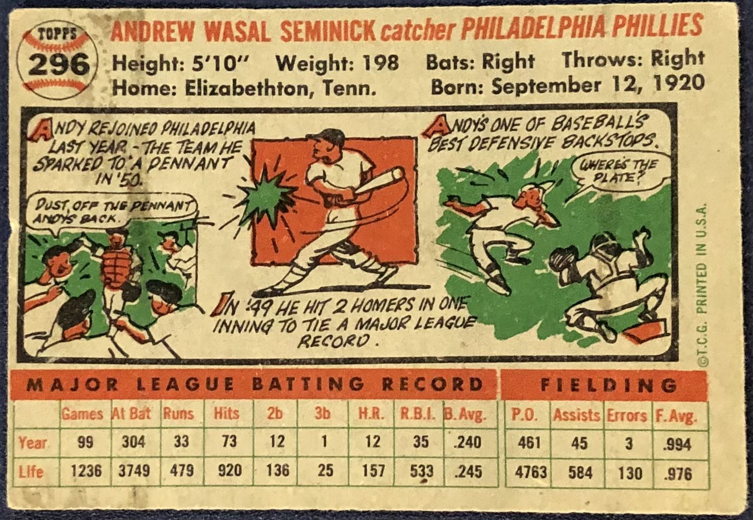 Card #296 MLB, baseball, vintage