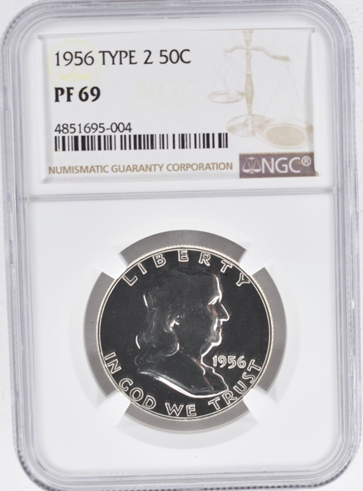 1956 TYPE-2 FRANKLIN HALF DOLLAR, NGC PF-69