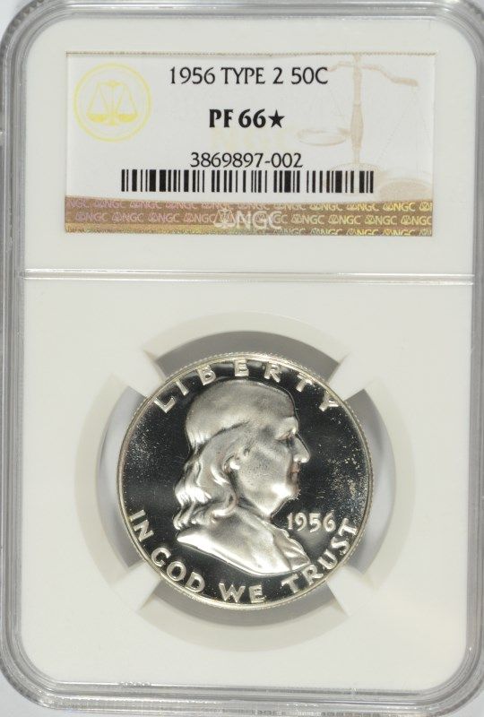 1956 TYPE-2 FRANKLIN HALF DOLLAR, NGC PROOF-66 STAR!