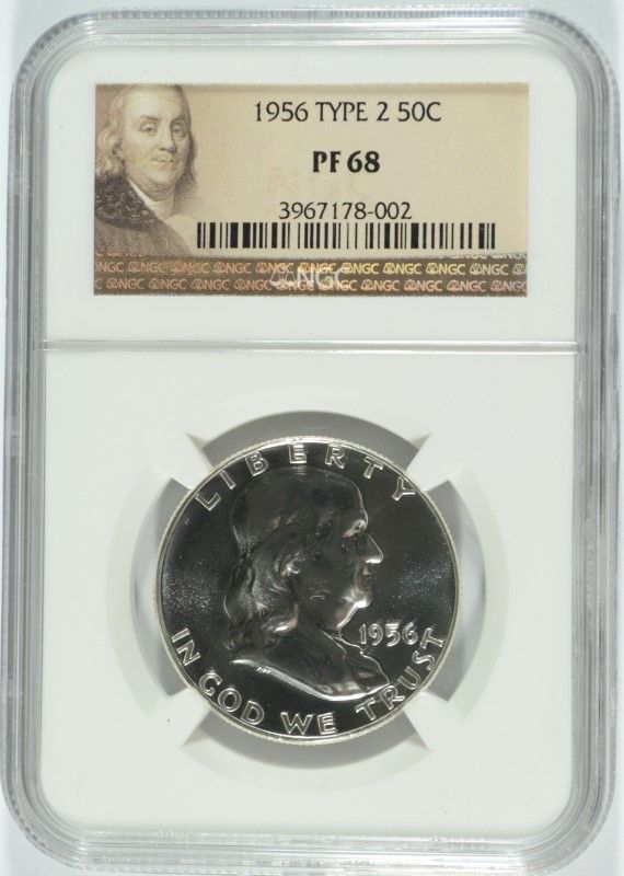 1956 TYPE-2 FRANKLIN HALF DOLLAR, NGC PROOF-68!