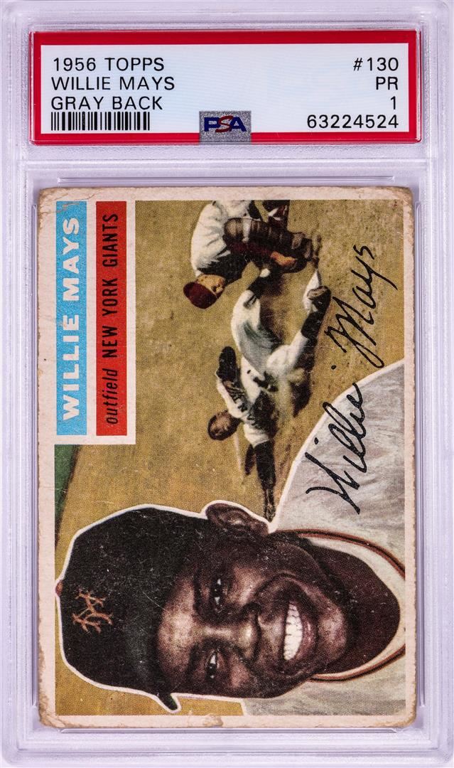 One 1956 Topps Gray Back Willie Mays MLB Card #130 PSA Poor 1. PSA Certified.
