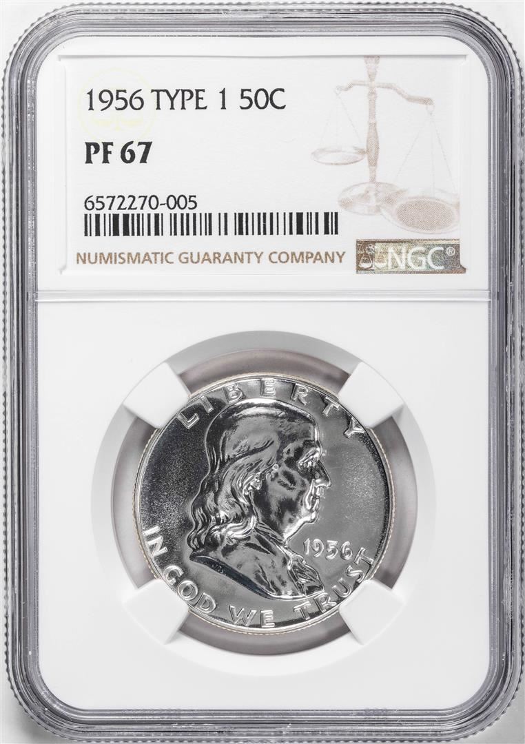 One 1956 Type 1 Proof Franklin Half Dollar Coin NGC PF67. NGC Certified.