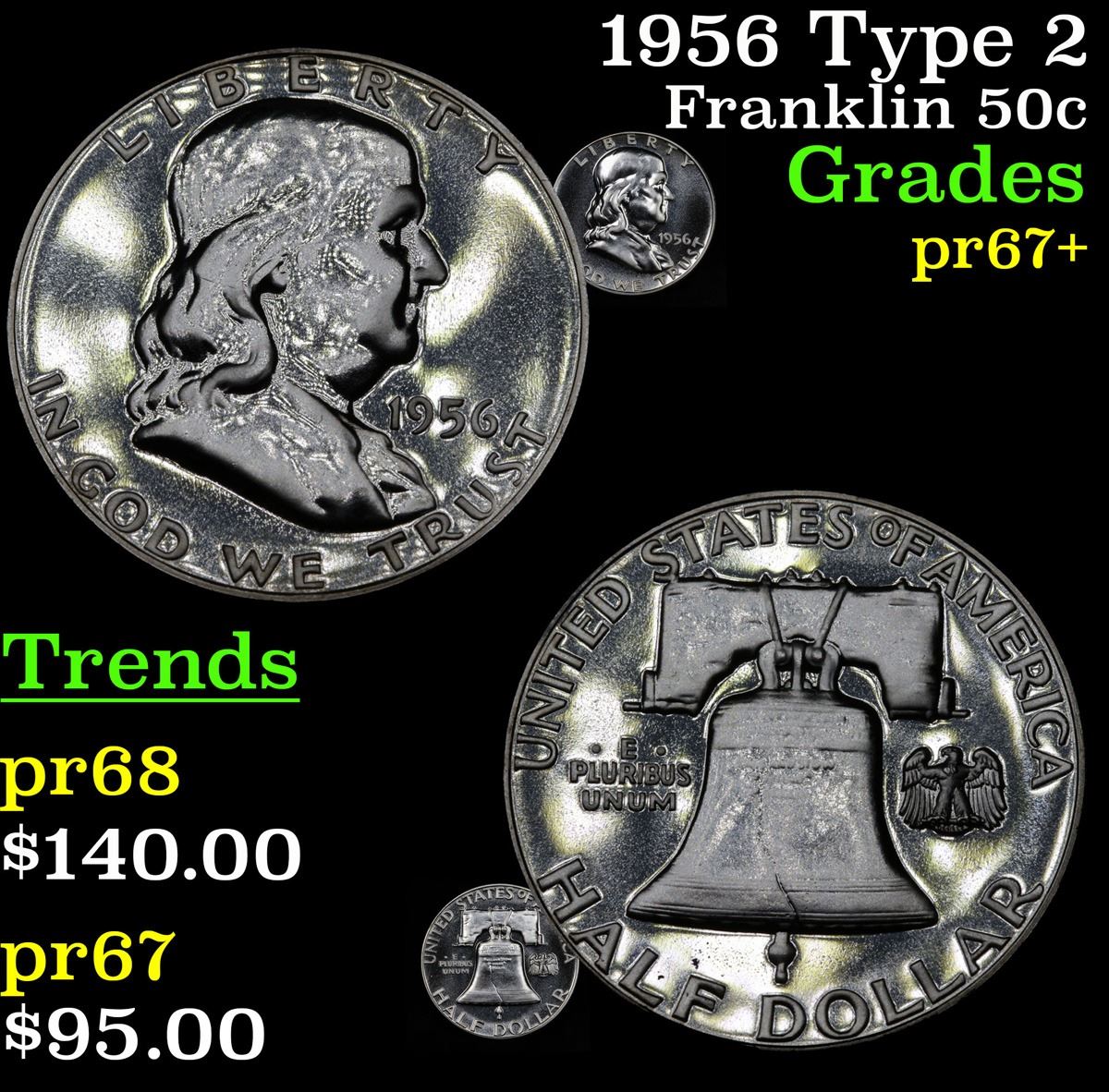 1956 Type 2 Franklin Half Dollar 50c Grades GEM++ Proof.