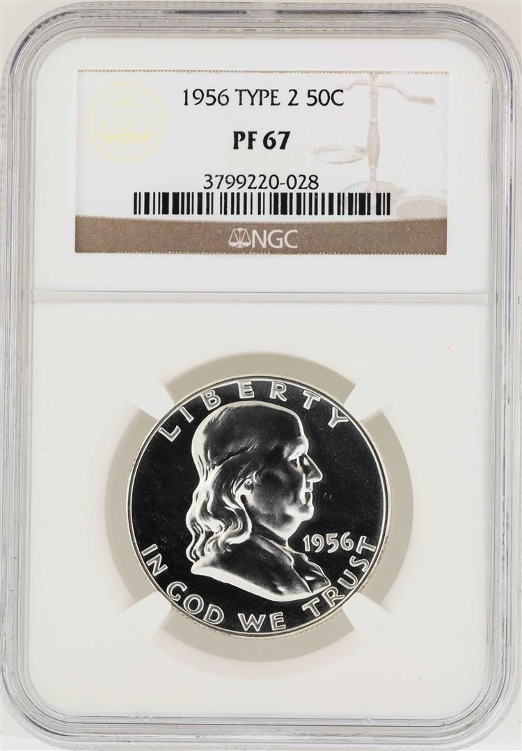 One 1956 Type 2 Franklin Half Dollar Proof Coin NGC PF67. NGC Certified.