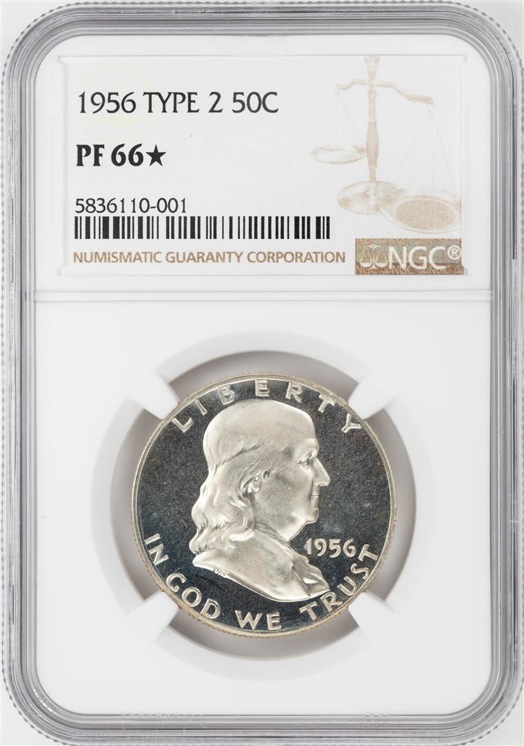 One 1956 Type 2 Proof Franklin Half Dollar Coin NGC PF66* Star. NGC Certified.