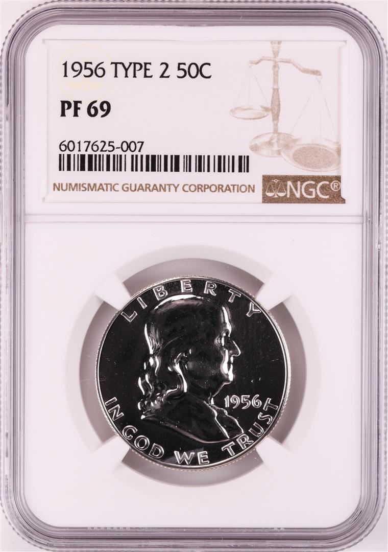 One 1956 Type 2 Proof Franklin Half Dollar Coin NGC PF69. NGC Certified.