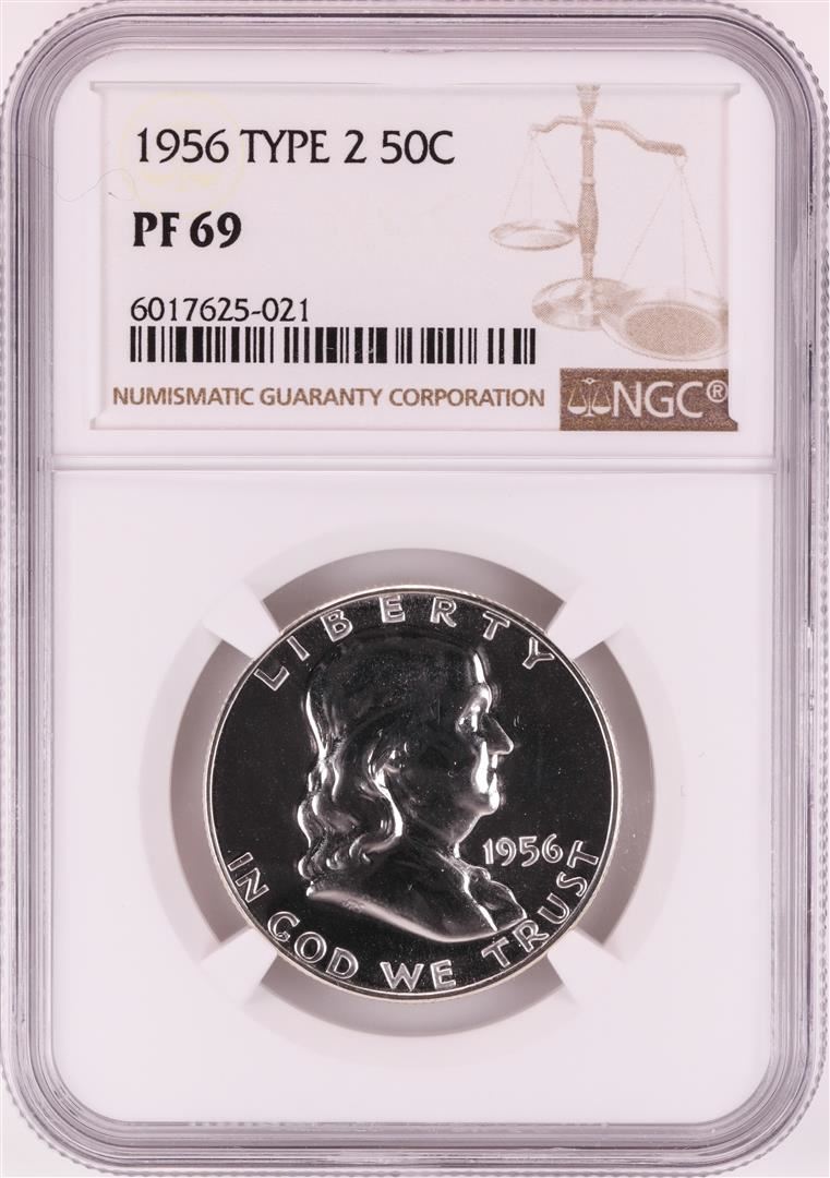 One 1956 Type 2 Proof Franklin Half Dollar Coin NGC PF69. NGC Certified.