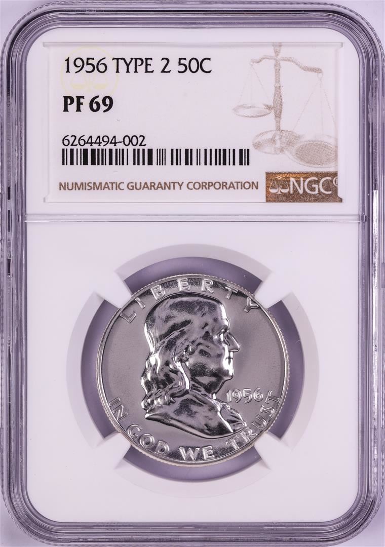 One 1956 Type 2 Proof Franklin Half Dollar Coin NGC PF69. NGC Certified.
