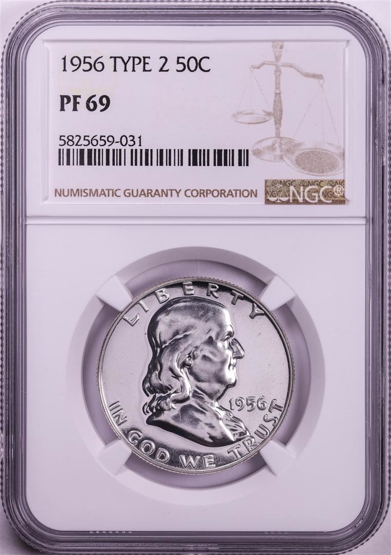 One 1956 Type 2 Proof Franklin Half Dollar Coin NGC PF69. NGC Certified.