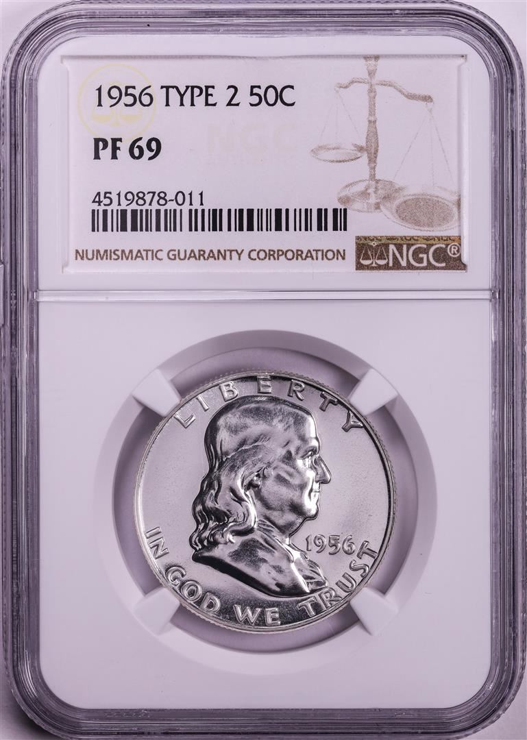One 1956 Type 2 Proof Franklin Half Dollar Coin NGC PF69. NGC Certified.
