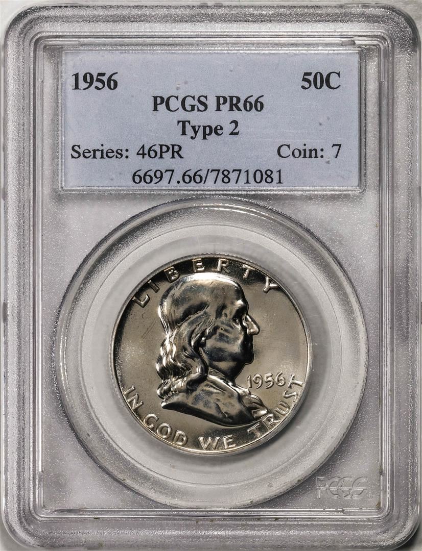One 1956 Type 2 Proof Franklin Half Dollar Coin PCGS PR66. PCGS Graded.