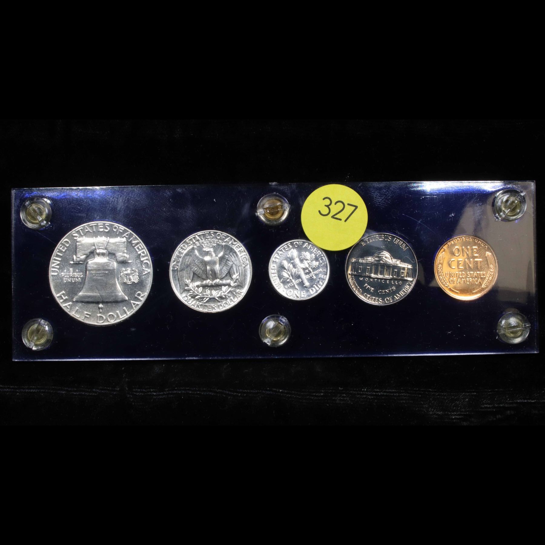 1956 United States Proof Set in Capital Plastic Holder. This set, has a 90% Proof Silver Franklin Half Dollar, a 90% Proof Silver Quarter, a 90% Proof Silver Dime, plus the proof nickel and proof penny.All encased in a Capital Plastic Holder.