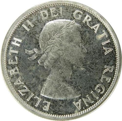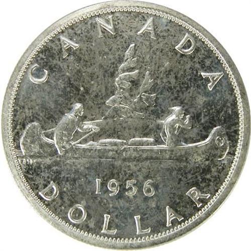 Canada Silver Dollar 1956 Very Choice Heavy Cameo Proof-Like. Pale golden toning