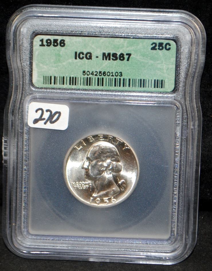 1956 WASHINGTON QUARTER - ICG MS67 (THE CURRENT COIN WORLD TRENDS LISTS AN MS67 @ $200.00)
