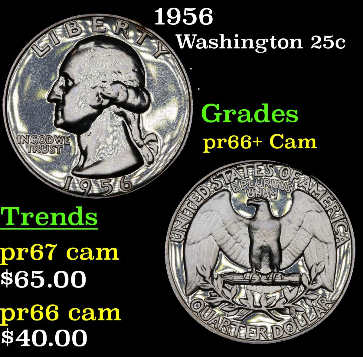 1956 Washington Quarter 25c Grades GEM++ Proof Cameo.