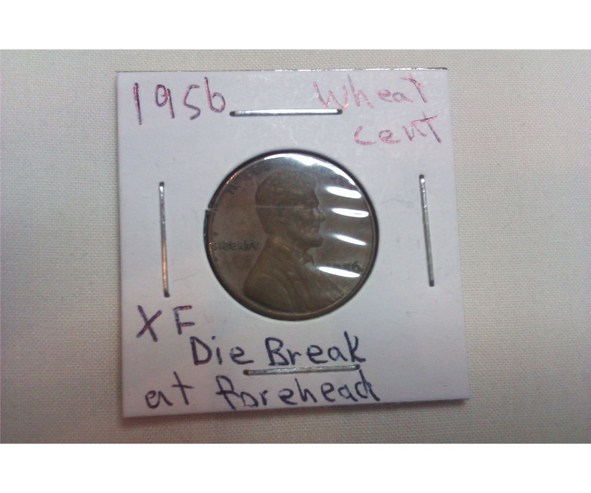 1956 XF Wheat Cent **Die Break at Forehead** ***Coin, Currency & All Items Listed in this auction - Grades, Conditions and Values are not Safe Deposit Coins LLC Responsibilty. Grades, Condition and Values are determined by Consigner(s) & Buyers ONLY***