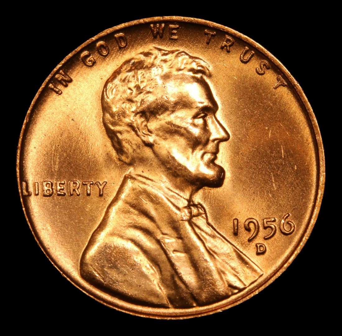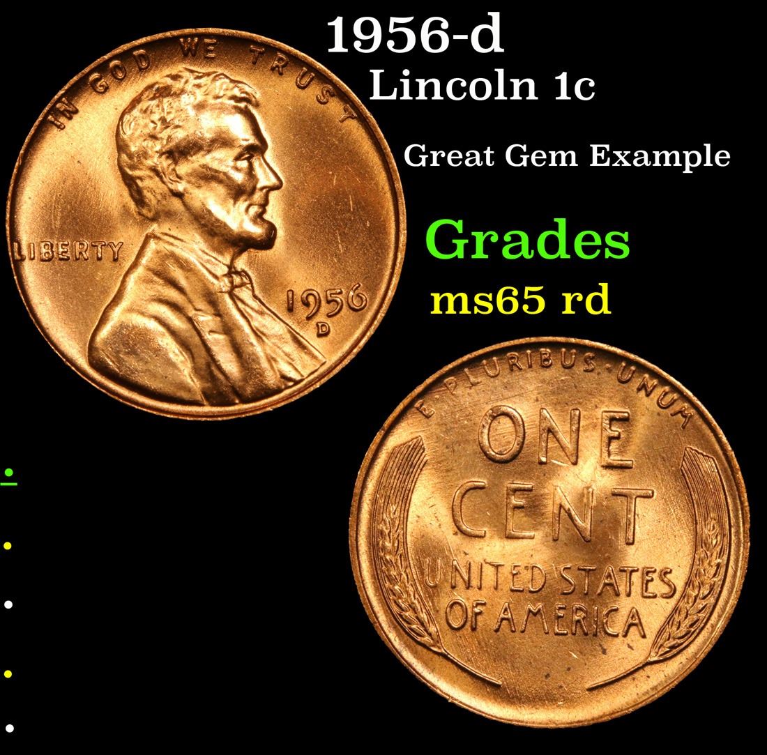 1956-d . Great Gem Example Lincoln Cent 1c Grades GEM Unc RD.