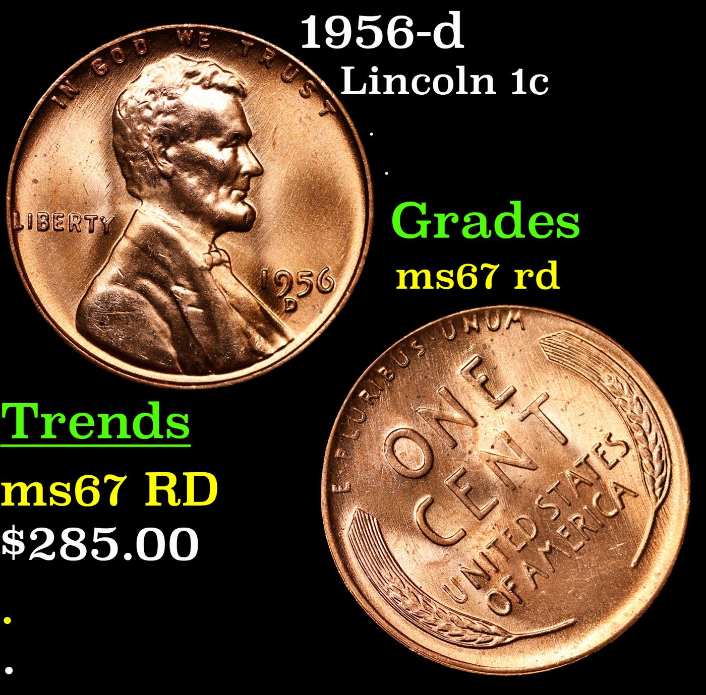 1956-d Lincoln Cent 1c Grades GEM++ Unc RD.