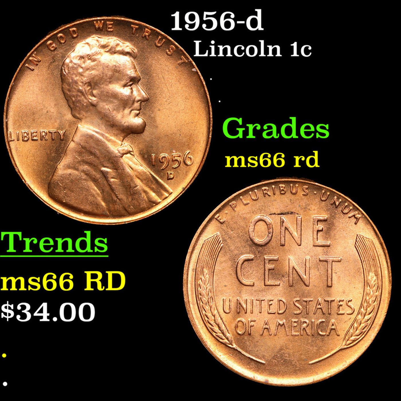 1956-d Lincoln Cent 1c Grades GEM+ Unc RD.